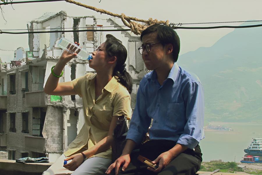 A woman takes a sip from a disposable water bottle as she sits next to a man on a hot and hazy day in a doomed city. The image is a still frame take from the brilliant 2006 film, *Still Life* (originally, 三峽好人, literally meaning 'Good People of the Three Gorges'), which uses the stories of two characters searching for lost spouses to ground a tale about breakneck modernization and it's effects on the soul. The film was shot in location in Fengjie, a city founded in 314 BC on the banks of the mighty Yangtze River, the longest river in Eurasia. Two-thousand-three-hundred-and-twenty-two years after its founding, the city was marked for flooding and was demolished. Located 160km upstream from the Three Gorges Dam, arguably the biggest architectural project on the planet, the people of Fengjie were among the 1.2 million displaced by the 42 billion tons of water that the dam holds back. This a *lot* of water. [NASA scientists calculated](https://www.jpl.nasa.gov/news/nasa-details-earthquake-effects-on-the-earth/) that the sheer mass of water stored behind the dam would increase the total length of the Earth's day by 0.06 microseconds and make the Earth slightly more round in the middle and flat on the poles. The film focus on the social ruins being slowly drowned beneath the 'economic miracle', thus grounding the massively large, powerful and abstract forces of capitalism and modernization into the specific struggling plights of characters.